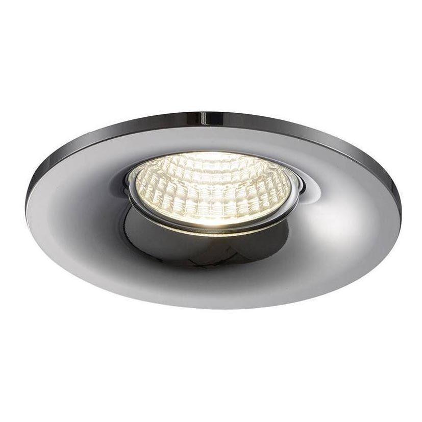Круглый встраиваемый светильник с хромированной глянцевой поверхностью.