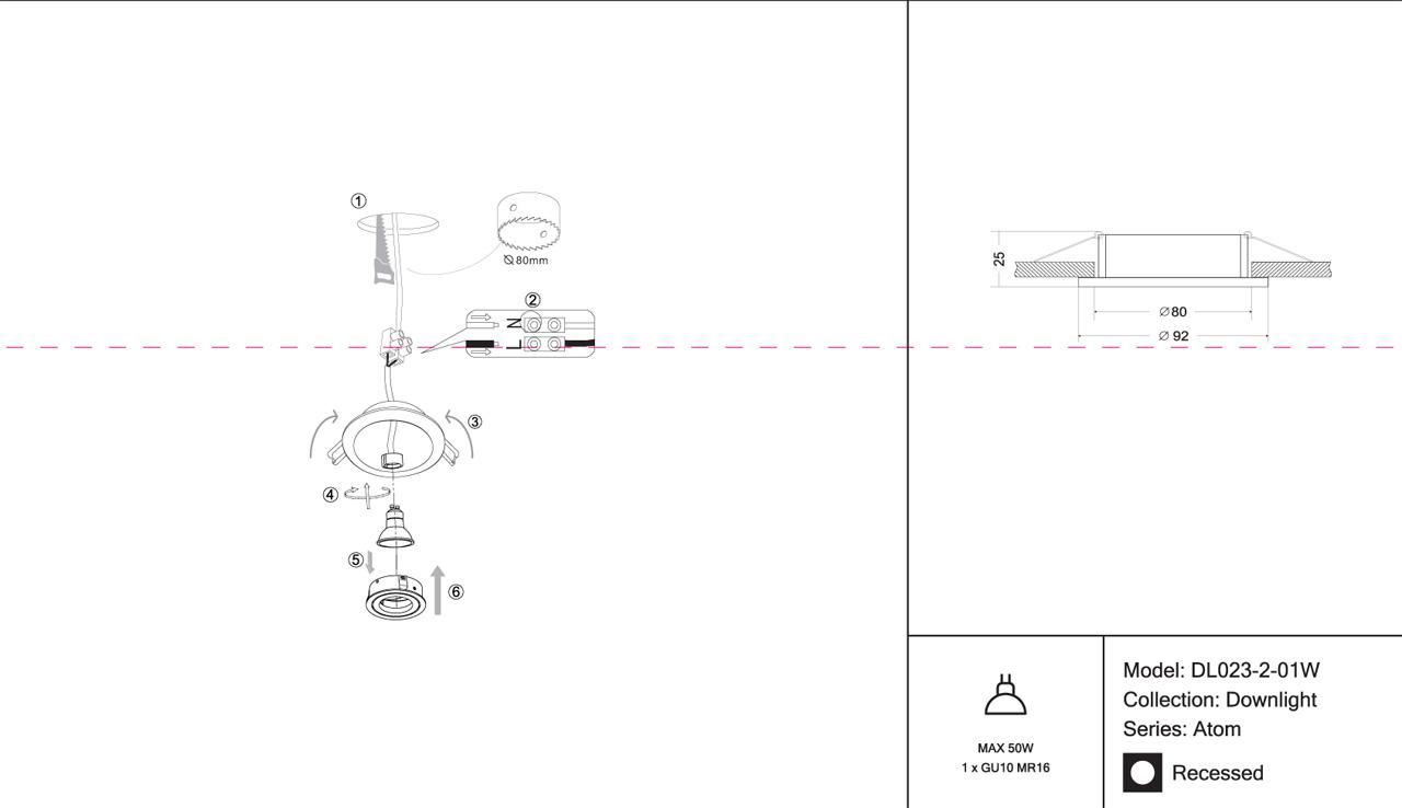 - Диаметр врезного отверстия: 80 мм (8 см)