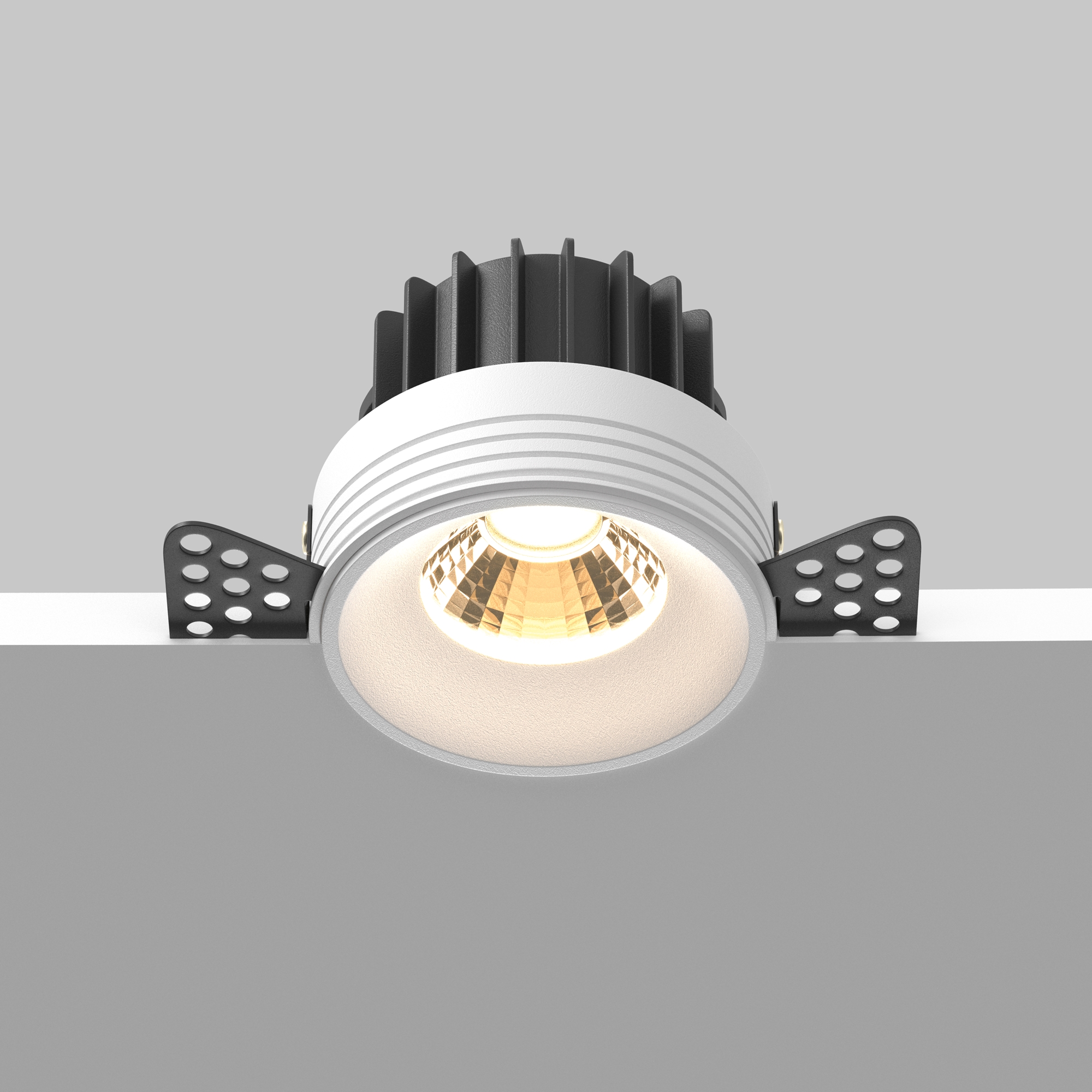 Материал корпуса – металл; цвет – белый, чёрный и латунь. Два варианта корпуса: встраиваемые светильники с узкой рамкой и встраиваемые светильники без видимой рамки, предназначенные для безрамочного монтажа под шпаклёвку. Широкий угол рассеивания 60°. Утопленный LED-источник света мощностью 7 или 12Вт. Высокий коэффициент цветопередачи. Цветовая температура 3000К или 4000К. Наличие биодинамических моделей и дополнительных антибликовых фильтров.
