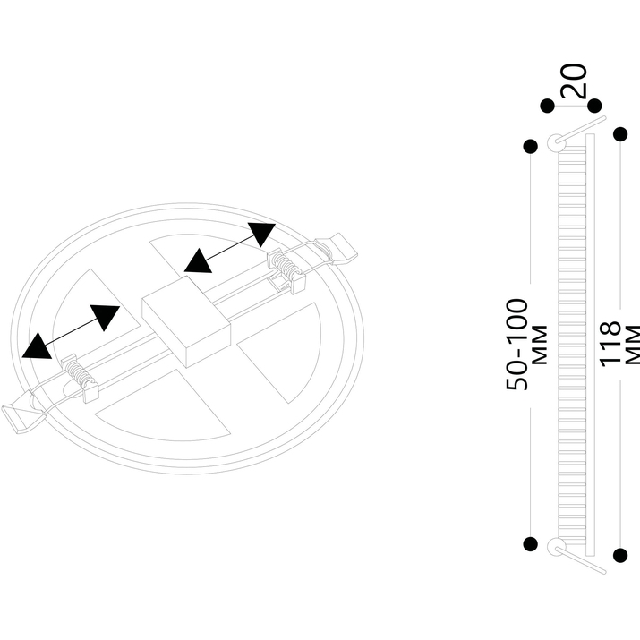 - Способ крепления: Распорная пружина