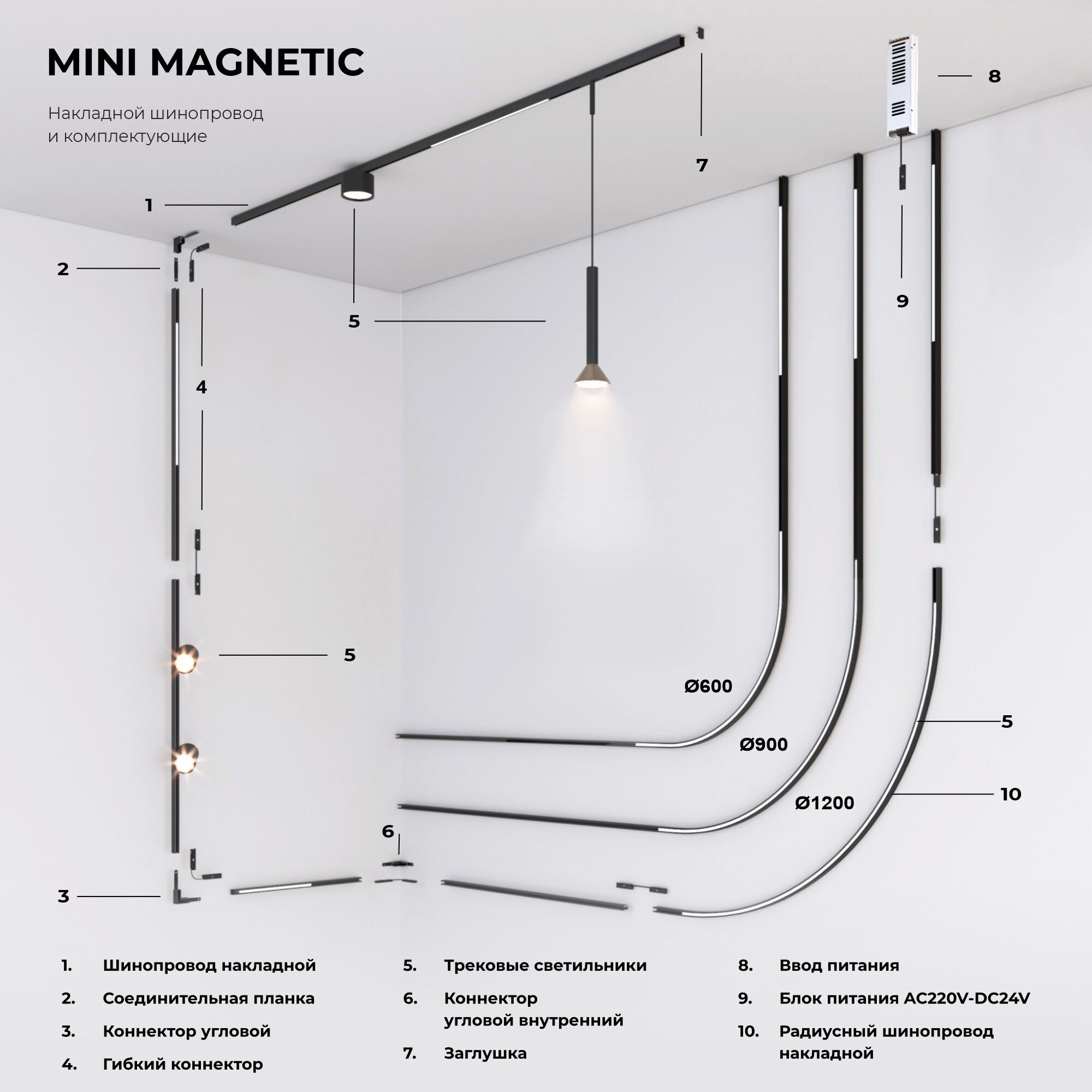 Mini Magnetic — ультратонкая низковольтная магнитная трековая система, предназначенная для создания уникальных дизайнерских решений. Благодаря своим компактным размерам она гармонично вписывается в любой интерьер.