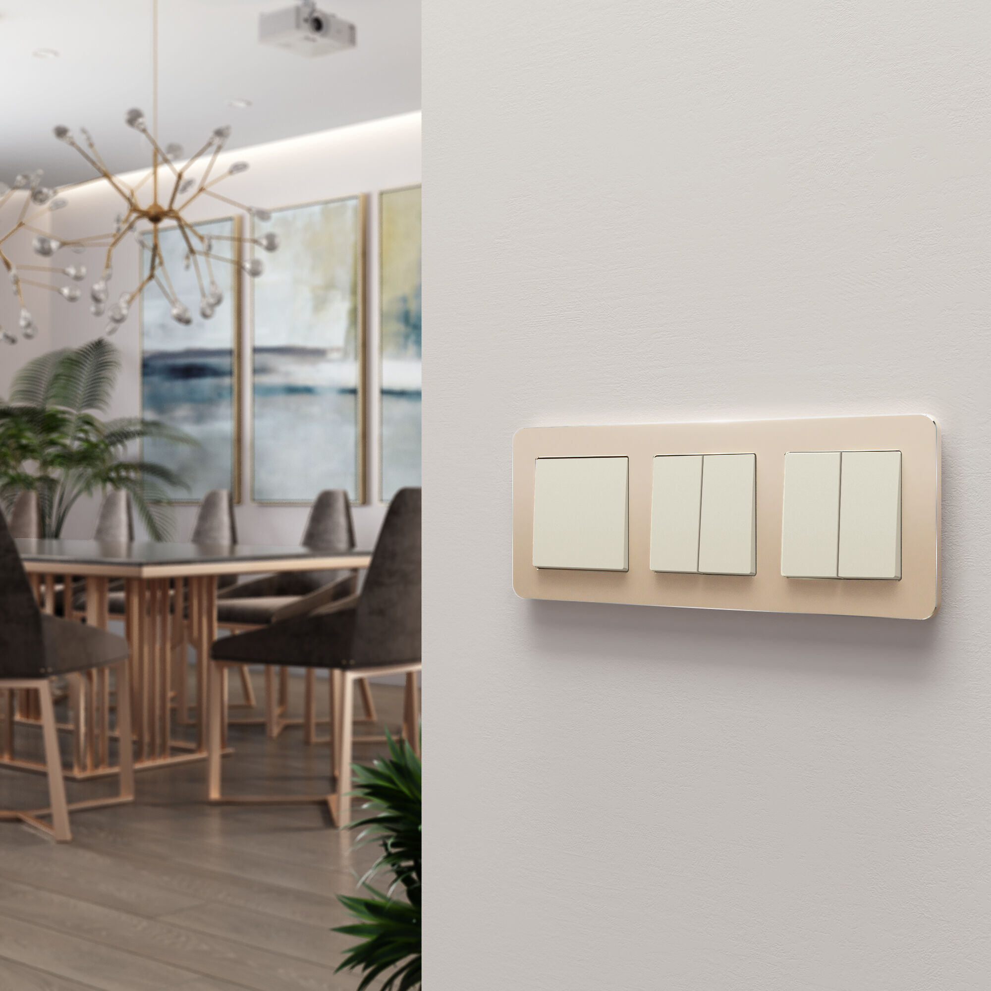 Механизм двухклавишного выключателя оснащен матовой лицевой панелью. Матовая поверхность – это современный тренд, задающий стиль вашему интерьеру. Она не бликует, обладает бархатистой фактурой и тактильной мягкостью. Цвет айвори будет эффектно смотреться в любом интерьерном пространстве и гармонично сочетаться с любыми материалами.