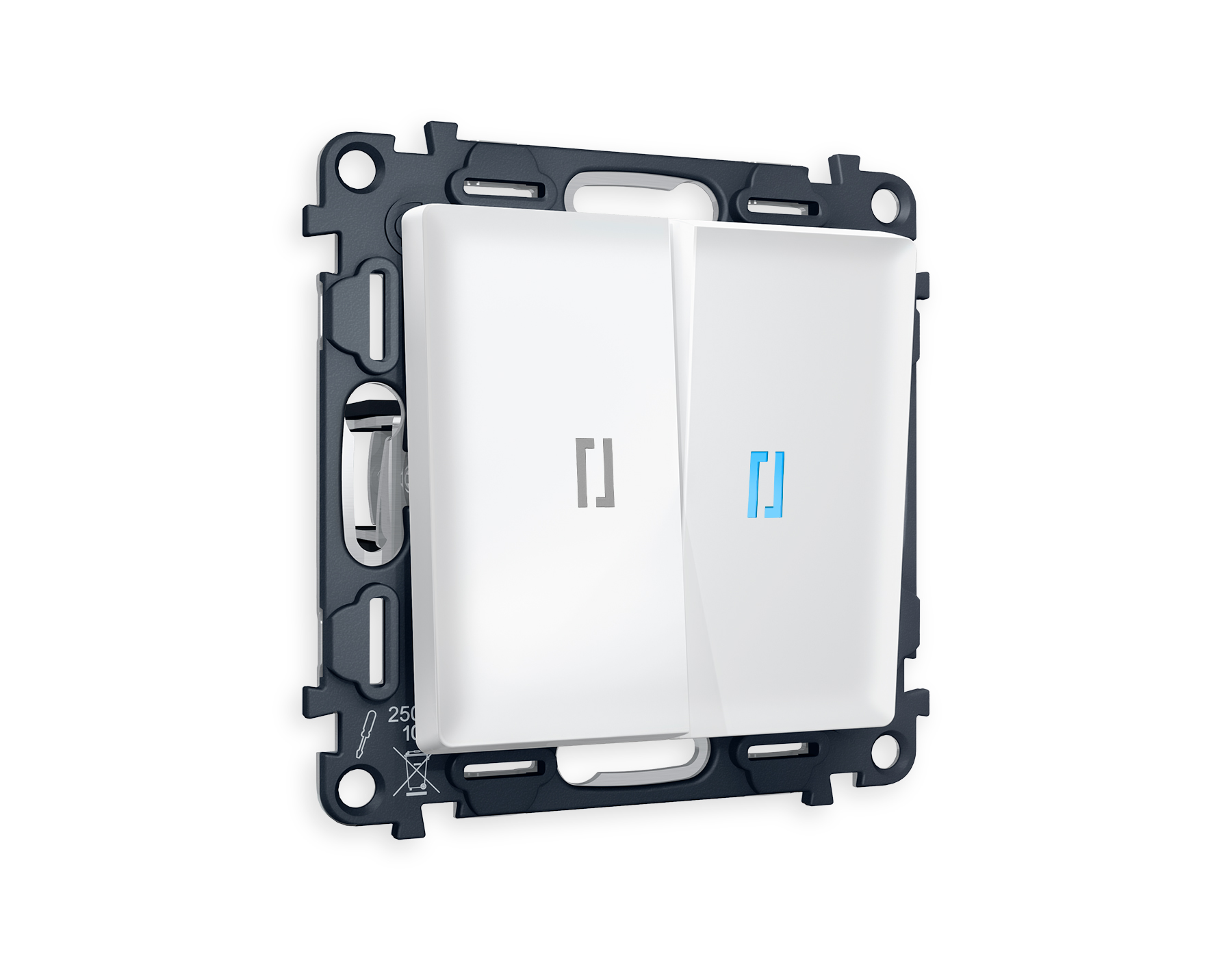 Многогранный ассортимент Ambrella Volt включает в себя механизмы, лицевые панели и рамки, а также комплекты, доступные в различных цветовых решениях. Продукция представлена в модульном исполнении, что позволяет гибко настраивать внешнийвид и функциональность. Вам будет легко заменить лицевую панель, рамку или механизм, найдя идеальное сочетание цветов.