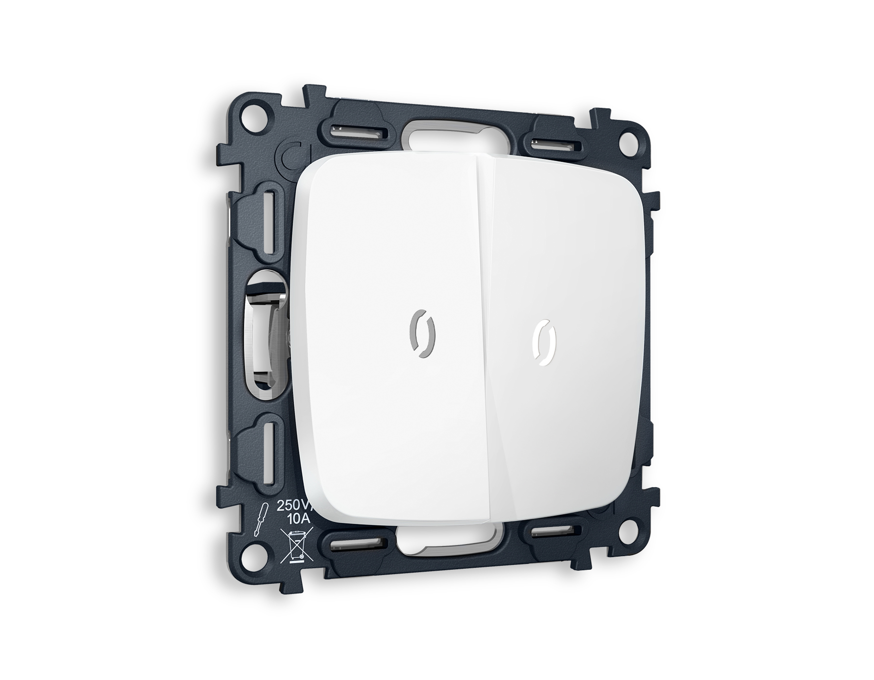Купить "Выключатель двухклавишный проходной с подсветкой 5600K Ambrella Volt Quant OMEGA MO124035"