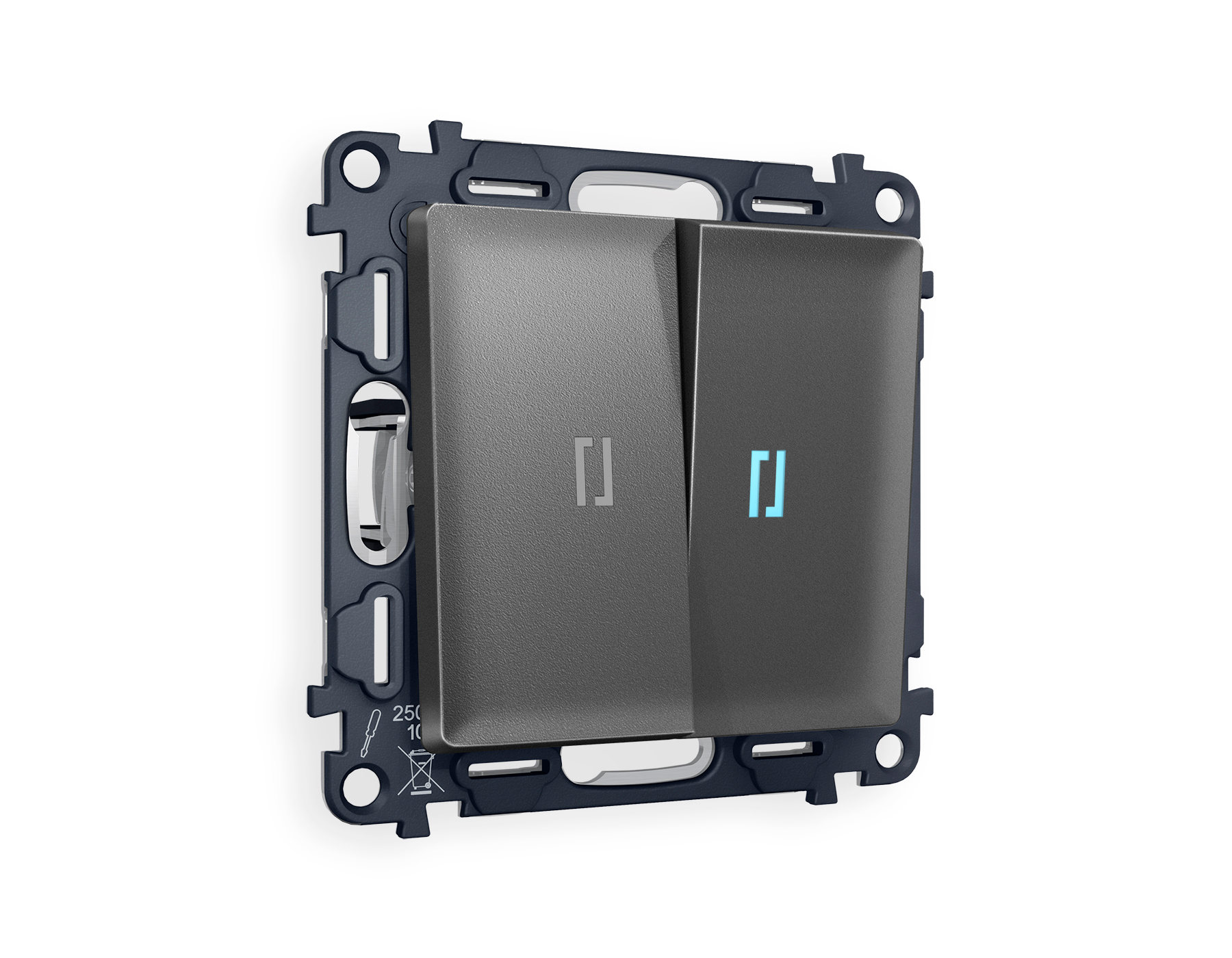 Многогранный ассортимент Ambrella Volt включает в себя механизмы, лицевые панели и рамки, а также комплекты, доступные в различных цветовых решениях. Продукция представлена в модульном исполнении, что позволяет гибко настраивать внешнийвид и функциональность. Вам будет легко заменить лицевую панель, рамку или механизм, найдя идеальное сочетание цветов.