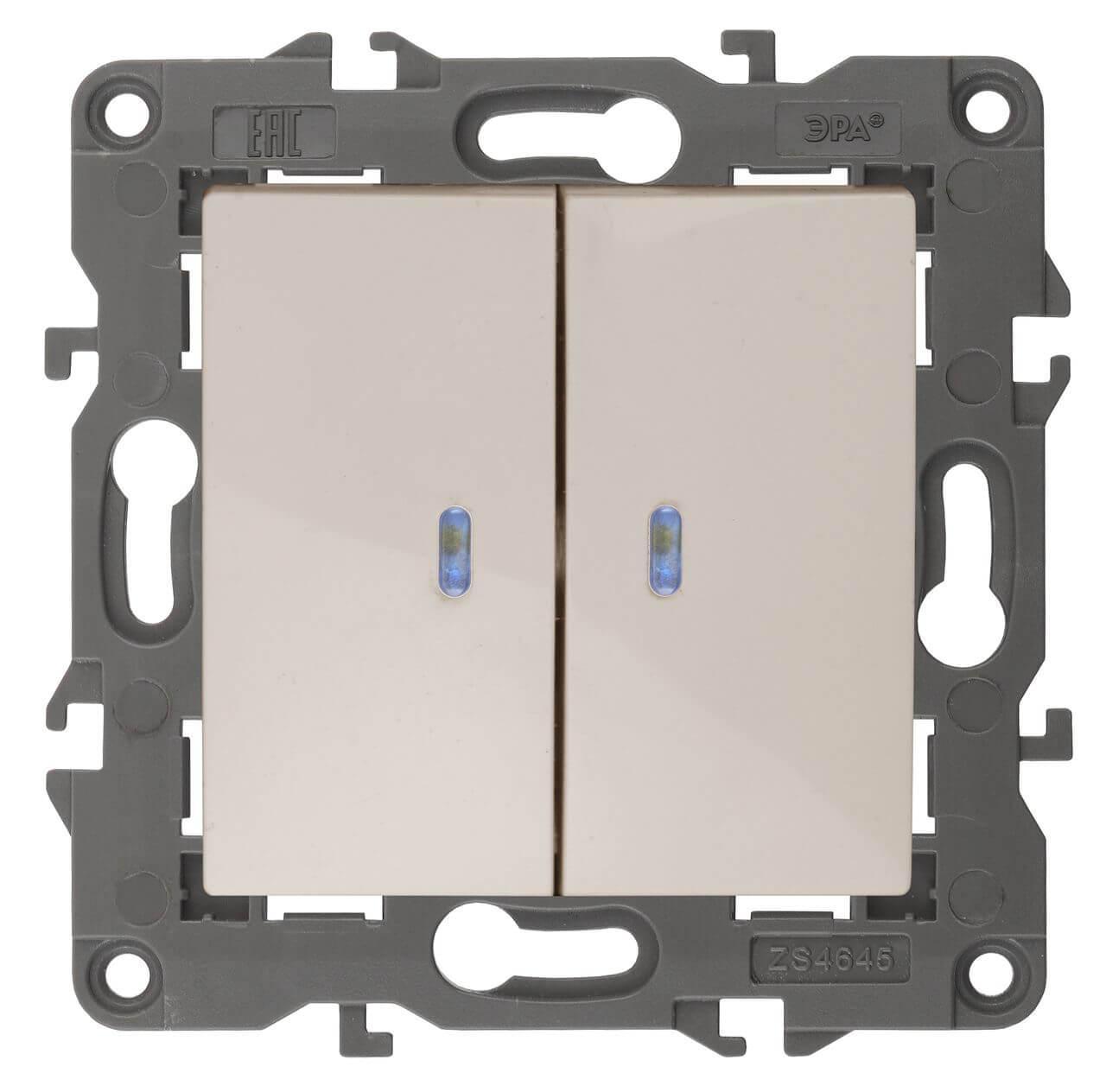 Купить "Выключатель двухклавишный с подсветкой ЭРА 10AX 250V 14-1105-02 Б0034238"