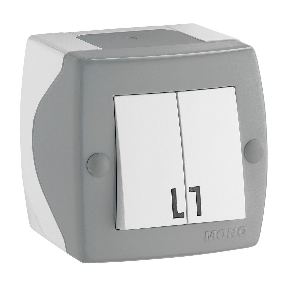 Купить "Выключатель Mono Electric Octans IP20 двухклавишный бело-серый 104-020001-102"