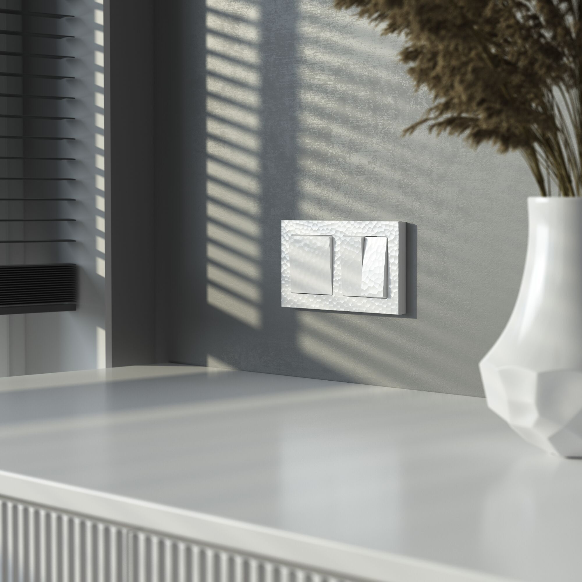Электроустановочное изделие монтируется в установочную коробку, оставляя видимым только внешнюю лицевую панель и накладную рамку. Механизм для скрытой установки оснащен суппортом из нержавеющей стали, позволяющий крепко зафиксировать изделие в подрозетнике. Надежные контакты из фосфористой бронзы и серебра выдерживают большую нагрузку и обладают большим эксплуатационным ресурсом 40 000 циклов.