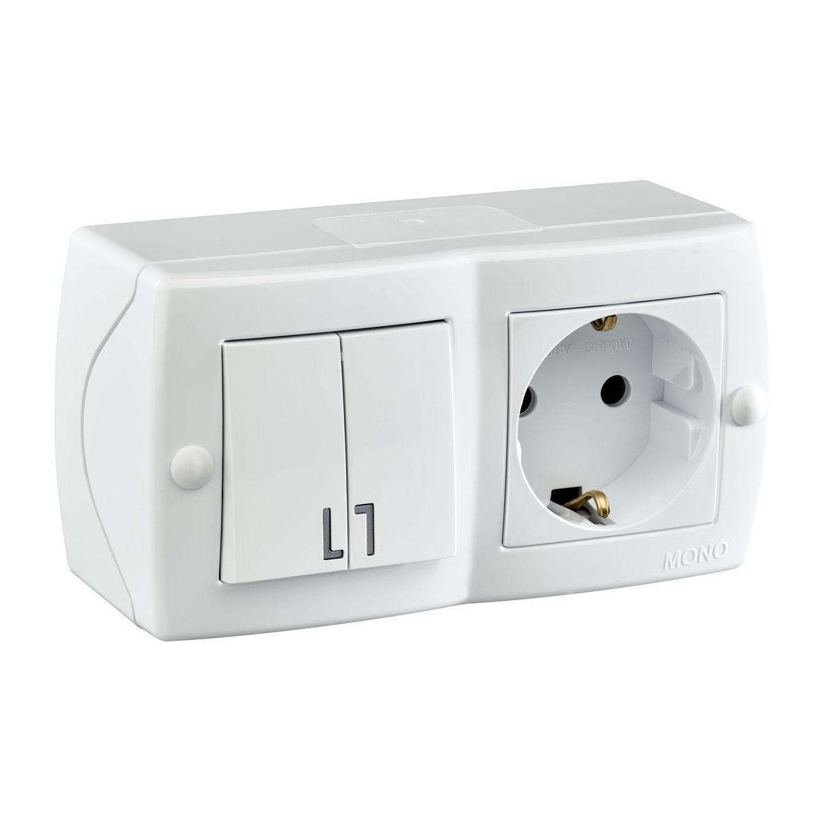Купить "Выключатель - розетка Mono Electric Octans IP20 двухклавишный - 2К+З белый 104-010101-181"
