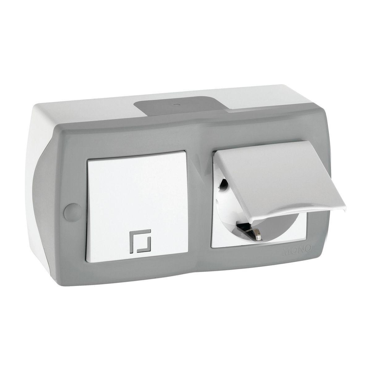Купить "Выключатель - розетка Mono Electric Octans IP20 одноклавишный - 2К+З с крышкой бело-серый 104-020001-183"